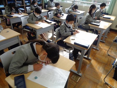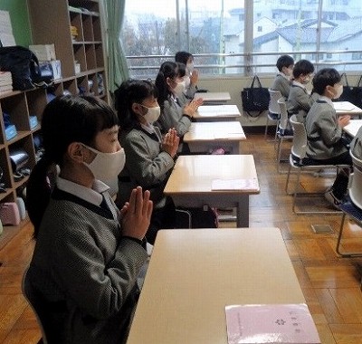 水曜日の朝、放送礼拝からスタートです。登校後、提出物を出したり、持ち物を机の中にしまうなどを済ませて礼拝に臨みます。見通しを持って朝の時間を過ごし、落ち着いて礼拝を迎えられるように一人一人心がけています。