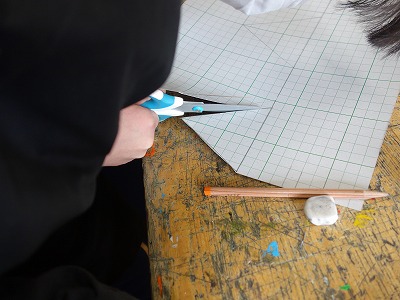 まず、どんな形の冠にするか考えて、はさみで切っていきます。
