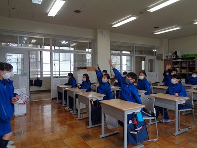 朝から空模様が不安定で、朝根っこマラソンは中止となりましたが、休み時間には、クイズ係さんがクイズをしてくれるなど、楽しい休み時間を過ごすことができました。