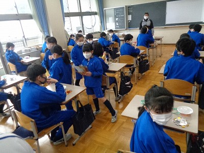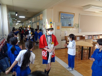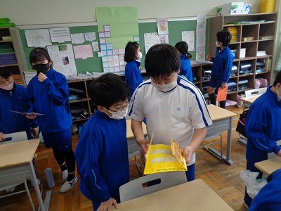 教室に戻ると、次は5年生の副班長さんが、完成したメッセージカードを見せに来てくれました。
