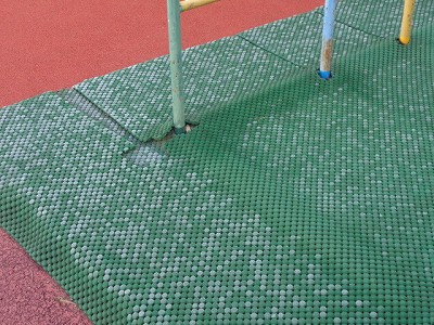 今朝の運動場の様子です。遊具のマットの上には、ドット柄模様に霜が降りていました。少し寒い朝でした。