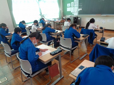 第9回の漢字大会の返却もしています。毎回、100点を目指して、家庭学習で毎日のように練習を続けた人もいました。漢字大会練習の宿題も、回を追う毎に丁寧さに磨きがかかりました。明日は、まとめの漢字テストです!