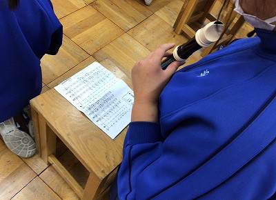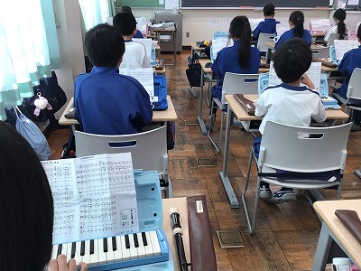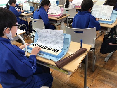 教室に戻り、リコーダーの音確認をした後は、鍵盤ハーモニカパートとのコラボのひとときです。