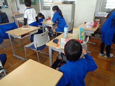 3学期の登校日も、今日を含めてあと6日となりました。朝根っこタイムは、ハンカチチェックと整理整頓をしました。