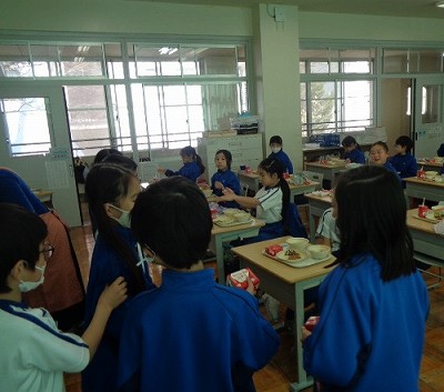 今日のメニューは、明日卒業する6年生のお祝いということで、すだちゼリーやお赤飯でした。「どうして、すだちなの?」について、わかった人がしっかり答えてくれました。6年生卒業おめでとう!と合わせて、3月誕生日のお友達のお祝いを誕生日係さんが進めてくれました。