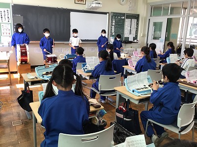 教室では「♪ミッキーマウスマーチ」の合奏をしました。小太鼓と大太鼓の打楽器パートを入れての合奏です。