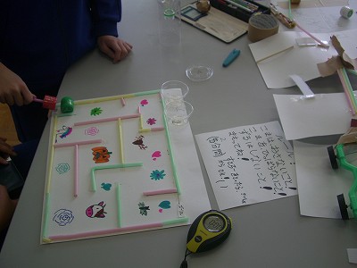 今日は、自分たちが作ったおもちゃで遊びます。前回の中間発表会で気づいた修正点を改善し、パワーアップしたおもちゃを準備しました。
