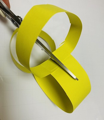この2つの わっかの 真ん中を はさみで 切ると・・・・