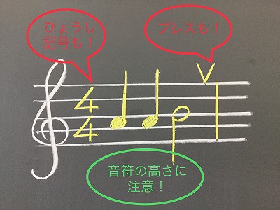皆さんは、音ぷだけでなく、“拍子(ひょうし)記号”や“ブレス(息つぎ)”、歌詞も書き込んでほしいです。