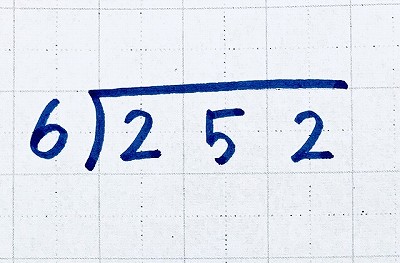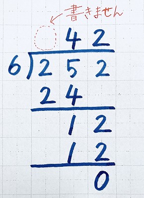 25÷6でたてた4という数字は、5の上にたてましょう。
