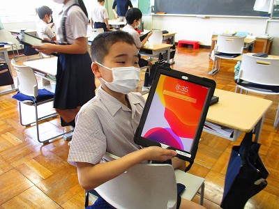 新品のiPad。はじめて使う子ども達ですが、問題なくIDやパスワード等を入れて立ち上げます。