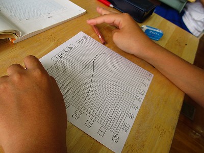 今日は、目もりのつけ方に気をつけて、折れ線グラフをかきました。