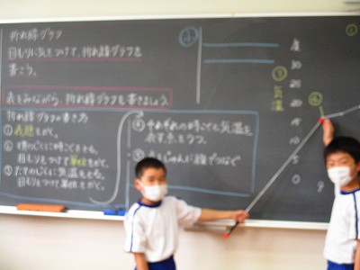 横軸や縦軸の項目、どのような目盛りが必要かに気づき、みんなで考えながら進めました。