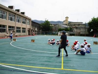 授業開始のチャイムが鳴る前から準備運動をし、グラウンドに整列してくれました。