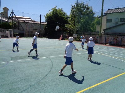 今日の体育は「ハードル走」ですが、みなさんの熱い思いに答えて、少しだけドッチボールを行いました。