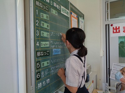 さっそく、時間割黒板係さんが明日の時間割を書いてくれました。