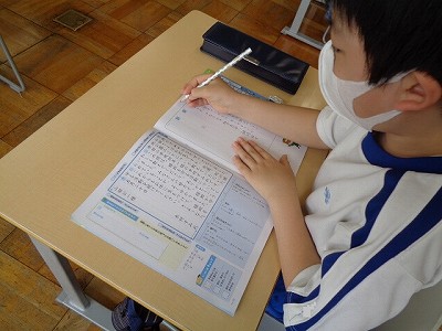 暑い日の6時間目ですが、誰一人集中を切らすことなく、最後まで真剣に丁寧な字を書いていました。
