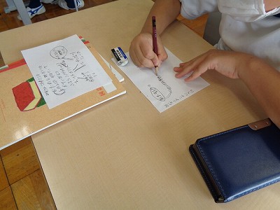 図・線・記号を使って、より分かりやすいメモを取り、みんなで見比べながら、いろんな工夫に気づきました。