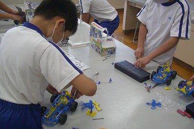 理科はテストの後、理科室で「モーターカー作り」をしました。