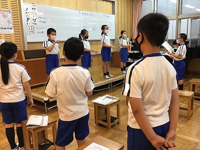 「みんなが見ているので緊張した」「両手の指揮は難しかったが、コツをつかんだら、けっこう簡単だった」「最後にグーとするところをもっと練習したいです」と次の時間に生きる回答が集まりました。