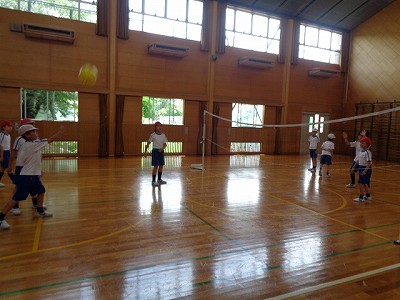 3時間目の体育の授業では、ソフトバレーボールを行いました。先週からは4人ずつで、試合を行っています。