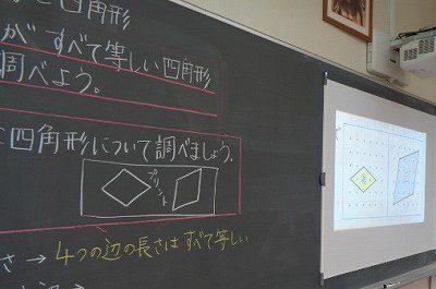 単に、四角形が「ひし形である」と分かるだけでなく、どうしてひし形と言えるのかを説明できるように、自分の言葉で何度も何度も説明をくり返しました。