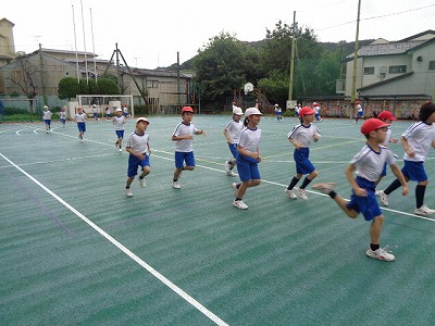 今日は小学校のグラウンドで走ります。最後の30秒と聞いて、スピードアップする4年生。