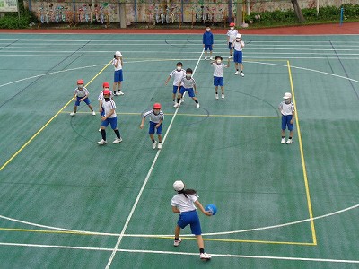 4年生はドッチボールが大好きで、休み時間はいつもみんなでドッチボールをしています。