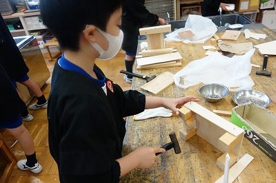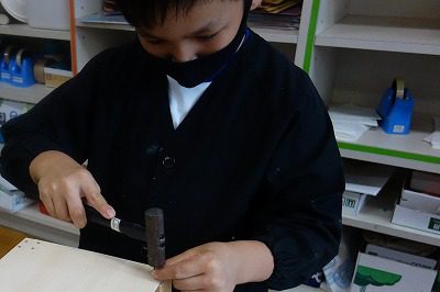 先週はほぼ「ギコギコ」だけの活動でしたが,今日は「クリエイト」しながら「トントン」することもたくさんできました。