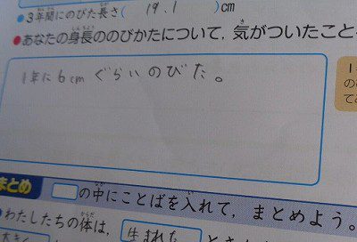 1年生の頃に比べて、心も体も大人に近づいた4年生です。1年生の頃の自分の身長と、現在の身長の伸び具合を調べ、自分の成長を見つめ直します。教科書などを使いながら、人によって身長が伸びる時期は異なることや、成長のスピードは人それぞれであることを学びました。