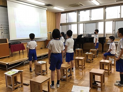 「♪ゆかいに歩けば」の歌唱に力を注ぐ時間を過ごしました。