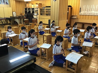 後半の時間は「♪ハローサミング」と「♪もののけ姫」のリコーダー練習です。