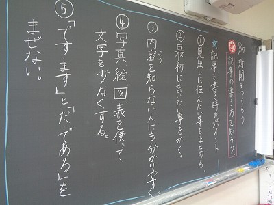 国語は「新聞を作ろう」という単元の学習です。水新聞コンテストに向けて、いよいよ記事を書きます。今日は、記事を書くポイントをおさえました。