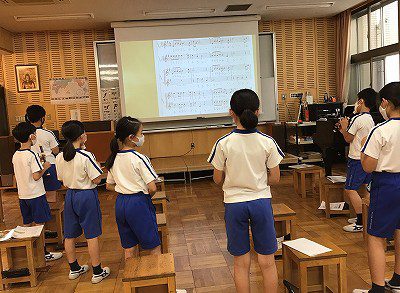 「♪もののけ姫」は、オンライン学習の時に「お母さんに特訓してもらった」らしく、みんなの指使いはばっちりです。