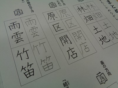 木へんと木の違いや、竹と竹かんむりの書き方の違いに注目し、バランス良く、美しく漢字が書けるように工夫をしました。