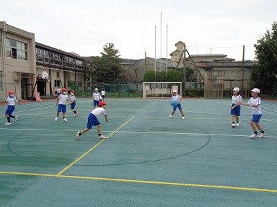 今日は、あそび係さんがドッジボールを企画してくれました。曇り空で、心地の良い風が吹く中、久しぶりに元気いっぱい全員が外で遊ぶ事ができました。