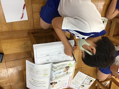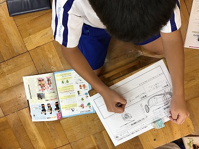 今日の昼根っこタイムは、思考力ドリルを行いました。今日は、泣いている1年生が何を言いたいかを説明するという学習です。いろいろな情報を整理し、的確に説明するという技術が必要です。いつ、どこで、だれが、どうしたをしっかり書くことや、どうすれば短い文で多くの情報を伝えられるのか、みんなの意見を聞きながら練習しました。