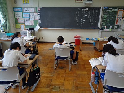 今日は、それぞれが分担して調べた「ごんぎつね」に出てくる語句をみんなで共有しました。第一場面から第六場面までの難しい言葉の意味を写真や図で理解し、さらに「ごんぎつね」の情景が鮮明になってきました。次の時間からは、登場人物の心情や思いに迫ります。