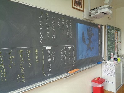 国語は「ごんぎつね」について学習をしています。今日は、いたずらをする「ごん」に対する「兵十の思い」を文章の中の兵十の行動から読み解いていきました。
