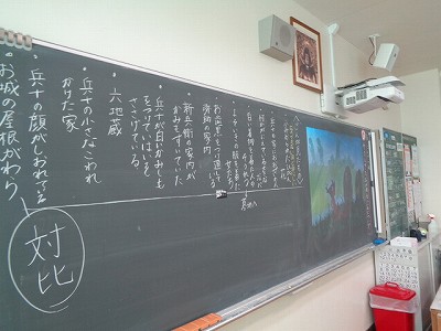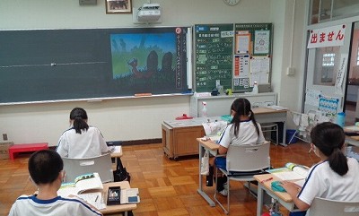 4時間目の国語は「ごんぎつね」について学習しています。今日は、第二場面の「そうしきをながめるごん」についての描写を、みんなで確認していきました。
