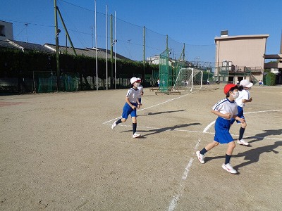 本日の朝根っこタイムは、マラソンを行いました。少し涼しくなったさわやかな秋空の下で、5分間一生懸命に走り続けました。