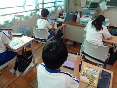 社会の学習では、「琵琶湖疏水」についての学習を行っています。今日は、疏水工事の工夫や、様子について、ロイロノートを使って学習しました。資料を見ながら調べたり、インターネットで言葉を確認しながら、自分なりのまとめノートを作っていきます。1学期から進めているタブレット学習も、どんどん定着して参りました。それぞれが、色や文字の大きさ、画像の配置なども工夫して、ノートづくりを行います。