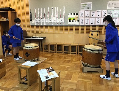 日本のお祭を視聴する学習のあとは、“おはやし”のリズムに着目する活動を行いました。