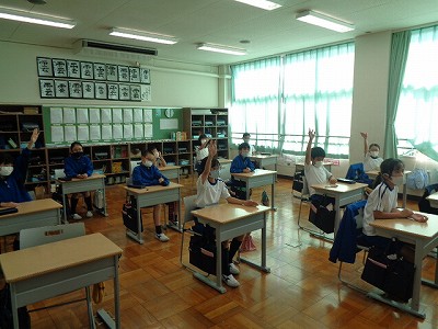 国語では、引き続き「クラスのみんなで決めるには」という学習をしています。クラスの中から、司会・時間係、記録係に分かれた「司会グループ」や「議題」を決め、前回に引き続き、2回目の話し合いを進めて行きました。今日の議題は「みんなが集中して授業をうけるためには」という議題です。前回の反省を踏まえ、全員で話合いを進めて行きました。