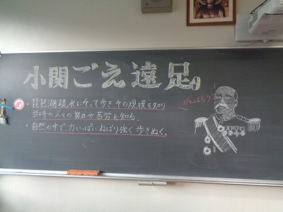 さて問題です。黒板に描かれたこの方は、どなたでしょう。