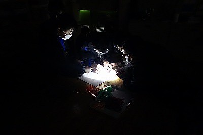 真っ暗にする時間を決め、自分たちの光やかげの感じを試せるようにしました。