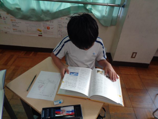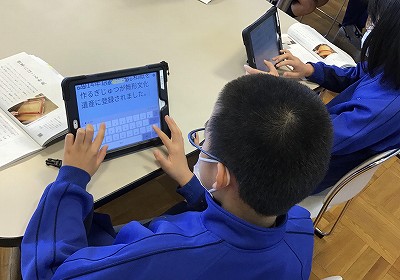 1時間目の国語の時間は、世界にほこる和紙の要約の続きに取り組み、最後にみんなで共有しました。筆者の伝えたいことを最後に必ず入れることや、簡潔に和紙の説明を行うことなど、要約のポイントをおさえながら、うまく200字にまとめることができました。