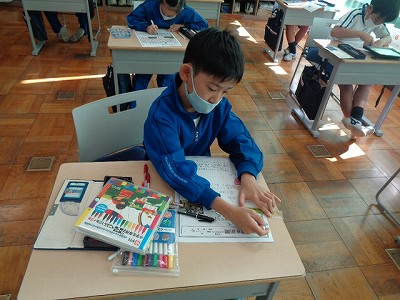 社会では、琵琶湖疏水新聞の仕上げを行いました。小関越え遠足を終え、取り組んできた新聞作りも、いよいよラストスパートです。完成に向けてペン入れを行い、色使いにもこだわっています。これまでの新聞作りの学習を生かして、一生けんめい取り組みました。