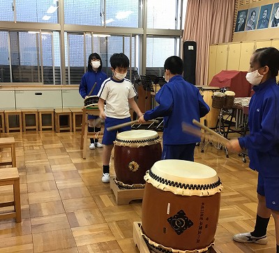 リズムパターンの組み合わせ方を工夫し、そこに自分達が考えたメロディを重ねた「おはやしづくり」の学習のまとめです。