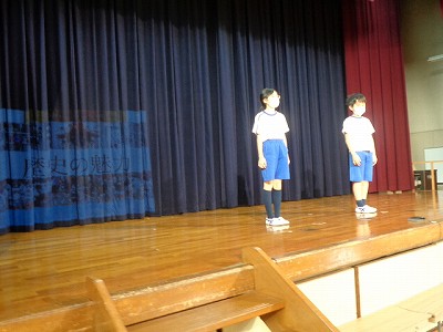1・2時間目は、学習発表会に向けての練習でした。今日は、実際のスライドをつけて発表を行います。立つ場所や移動にも少しずつ微調整が…しかし、臨機応変に対応できる頼もしい4年生でした!
